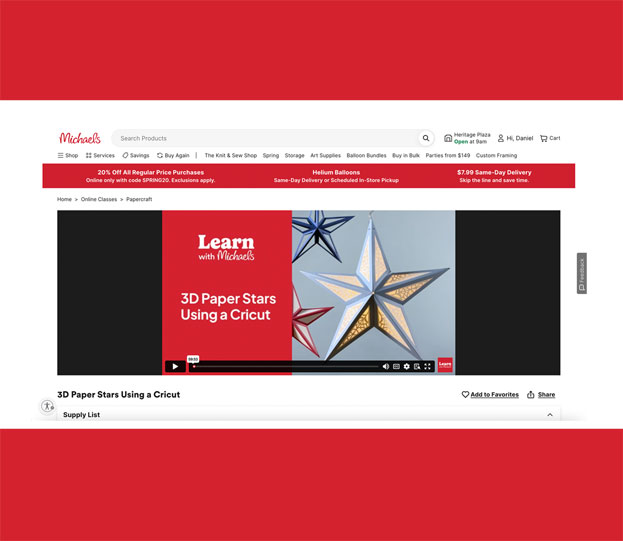 Michaels Craft Store Online Class - 3D Paper Stars Using a Cricut